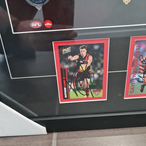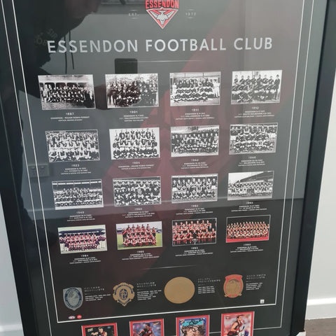 With a hand Signed pieces including Matthew Lloyd, Kevin Sheedy, Gavin Wanganeen and Michael Long. This is a great keepsake of Essendon's Premierships.