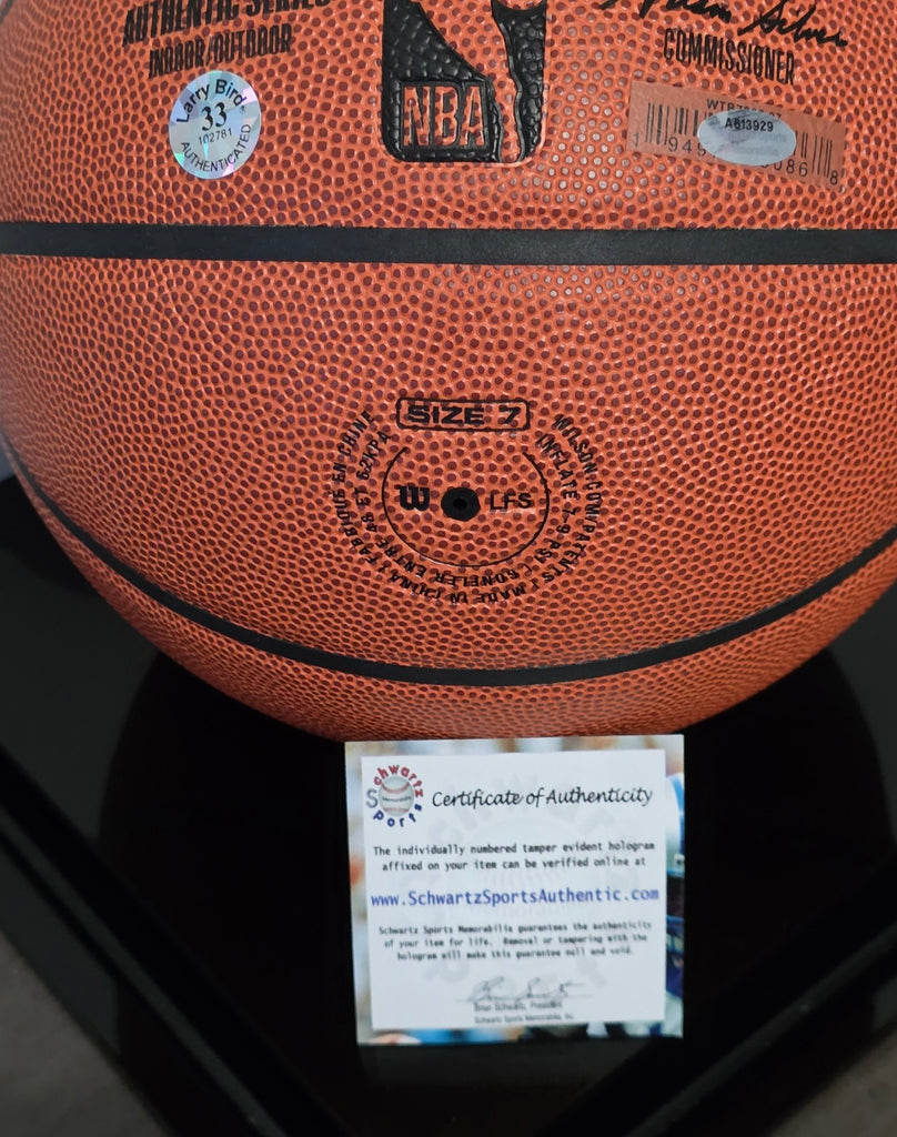 The autograph(s) includes an official Schwartz Sports Hologram and matching COA as well as an official Larry Bird player hologram for authenticity purposes.